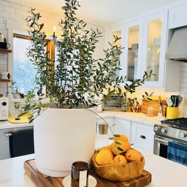 キッチンのど真ん中にオリーブの木が。