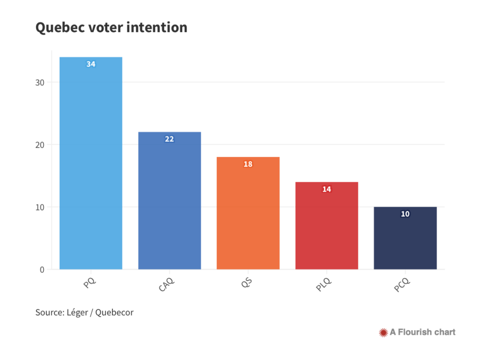 前回2022年に行われた総選挙では90議席のスーパーマジョリティーを獲得した現政権のCAQ。